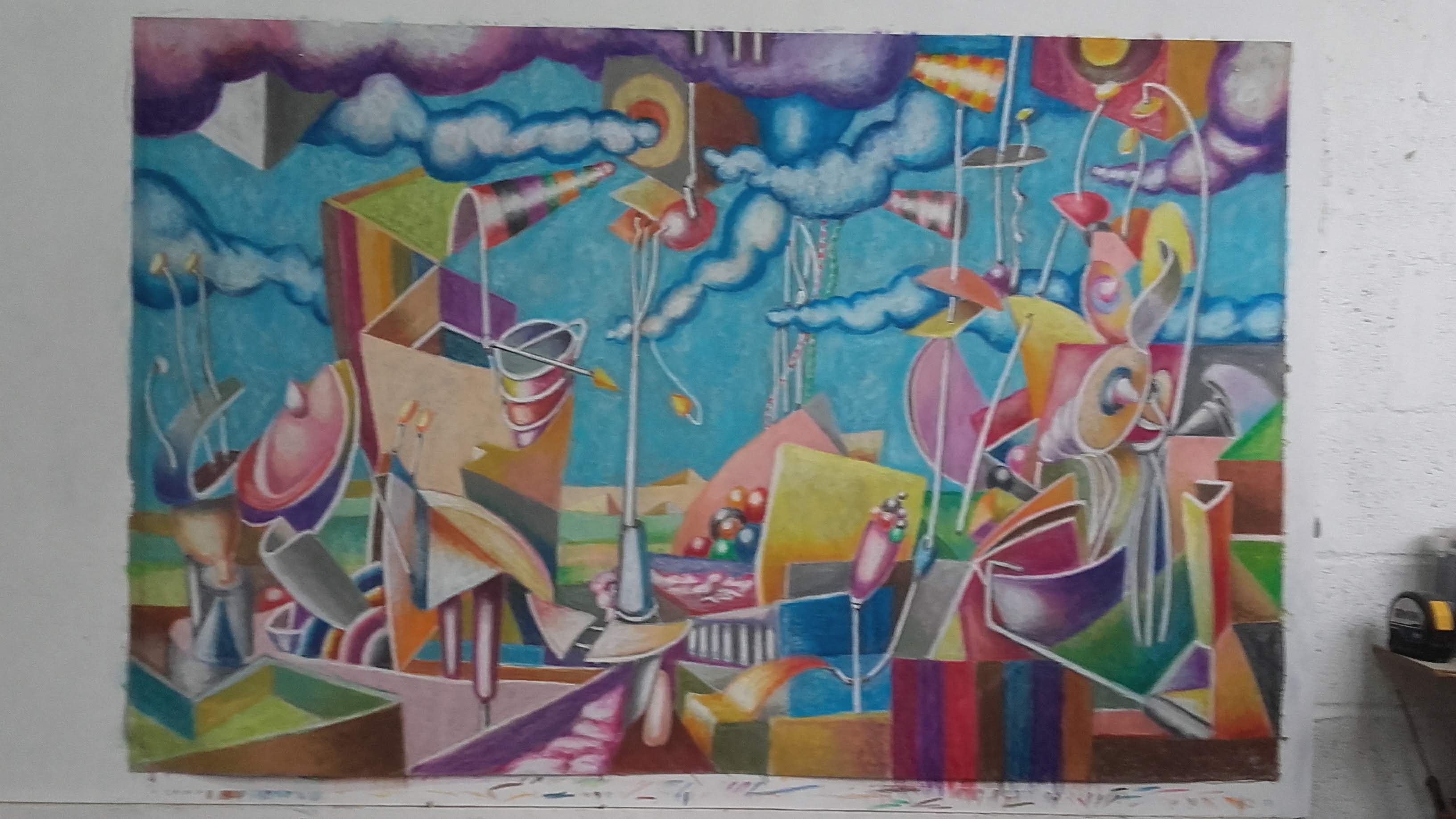 Après une longue pratique de la peinture, le pastel à la primeur pour l'instant dans mon travail, avec aussi une mise en situation et en volume d'objets et de matériaux qui deviennent « les petits théâtres »
