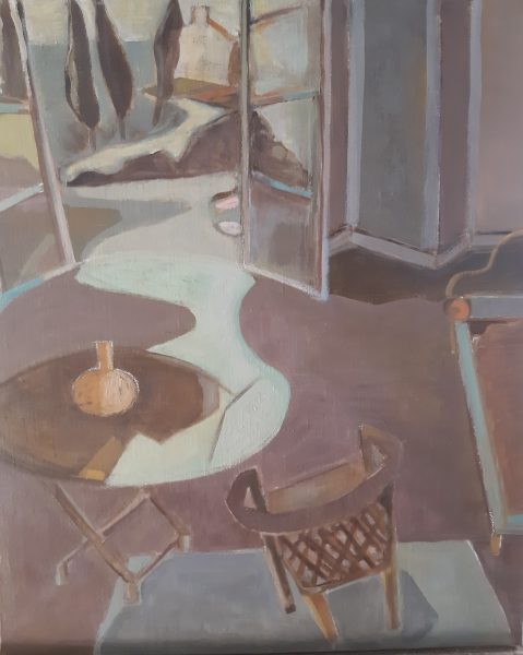 Mes scènes d’intérieur, autre sujet de prédilection récurrent ne sont pas des cartes postales mais des pages de mon journal intime, j’écris presqu’autant que je peins. Chaque jour, chronique du temps présent et passé .