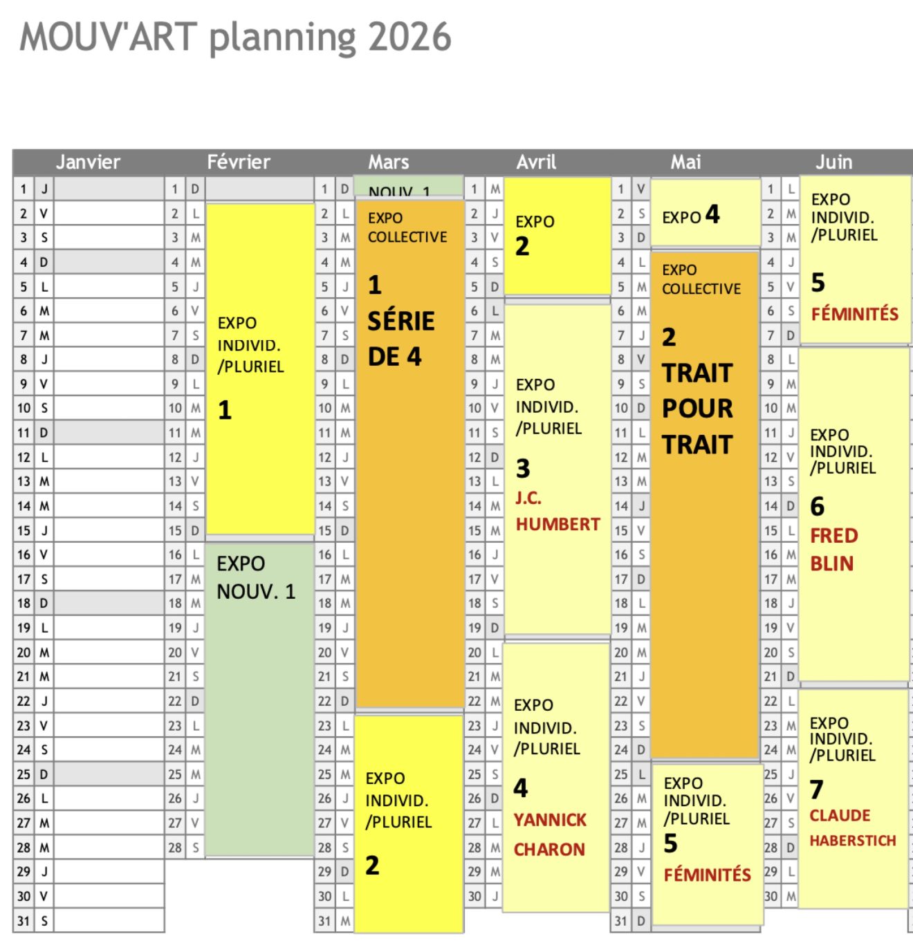 Rien de tel que la préparation d’un projet en perspective ! Exposition individuelle ou plurielle, réservez au plus vite les créneaux disponibles 1 et 2 pour le 1er semestre 2026.
